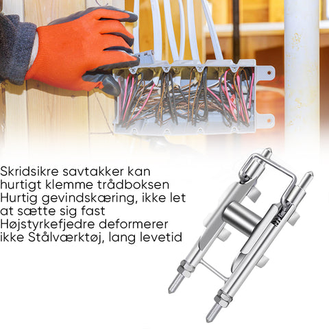 • Stærke, skridsikre takker: Hjælpemidlet er designet med skridsikre takker, der sikkert griber fat om ledninger og kabler. Denne innovative designfunktion sikrer, at dine kabler klemmes effektivt, hvilket øger stabiliteten og reducerer risikoen for at de glider eller løsner sig under installationen.