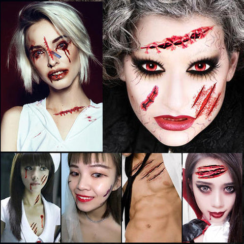 👻[REALISTISK MØNSTER] Mønstret på de falske tatoveringer er meget realistisk med skræmmende falske tatoveringsmærkater. Perfekte cosplay-rekvisitter. Velegnede til zombie-makeup, Halloween-makeup-sæt eller vampyrbid-makeup, tatoverings-cosplay og maskeradefest.